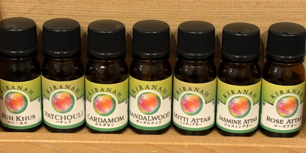 ジャスミンアッター:ジャスミンの花を使用し、甘く官能的な香りが特徴。