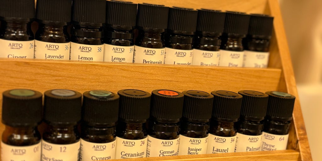 当店では、世界レベルのオーガニック認証を取得したアロマセラピー商品であるARTQ ORGANICSの精油を使用しております。スキンケア商品も取り揃えております。